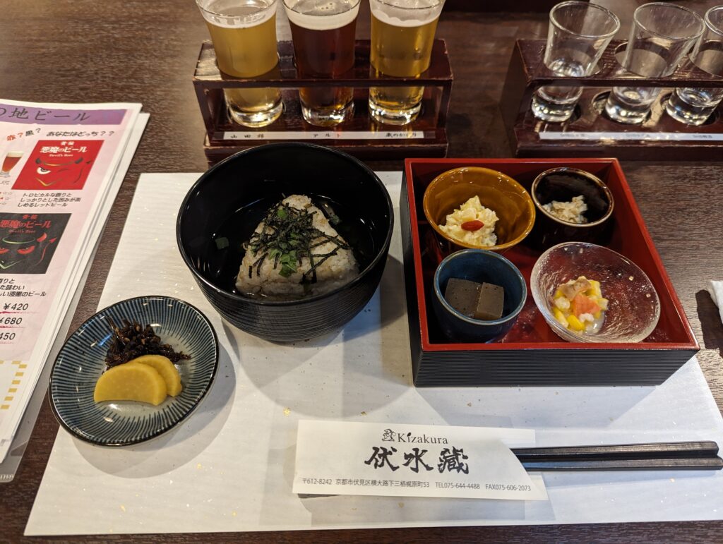 飲み足りない人や気になるお酒がある人は追加オーダー(有料)もできるということでクラフトビール飲み比べセットと高い日本酒もいただきました。